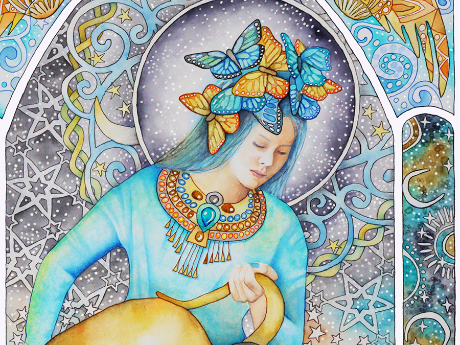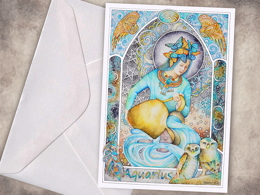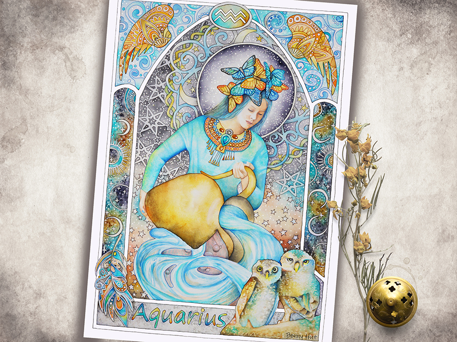 | Aquarius astrology celestial zodiac star sign watercolor painting wall art